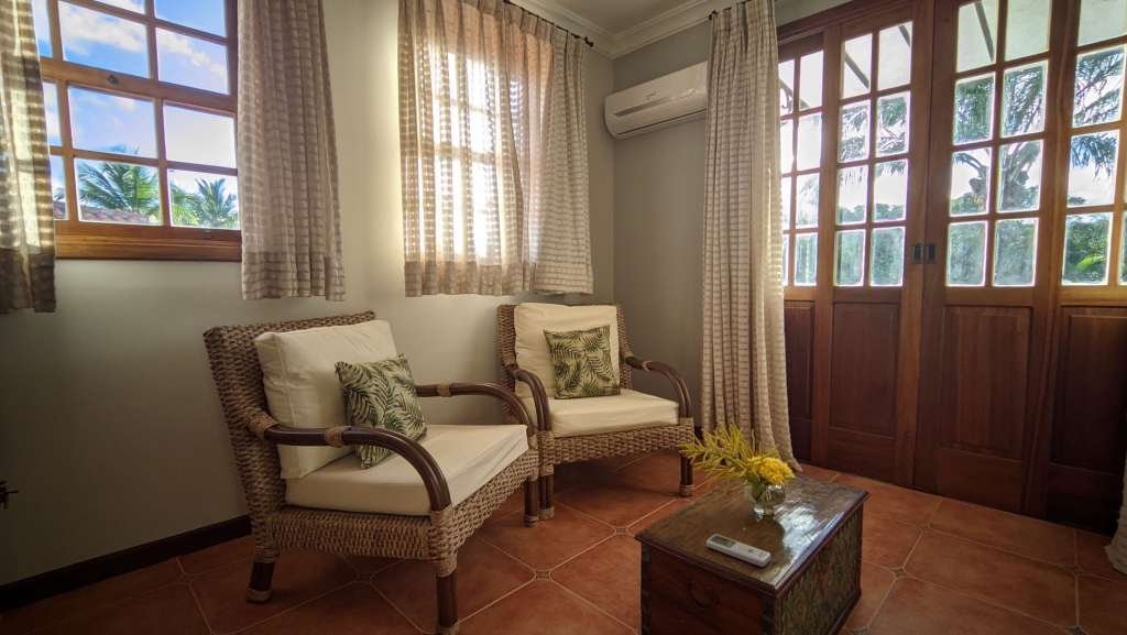 Amplos espaços, vista para o mar e mobiliário sofisticado. A suíte master é a maior acomodação do Vila Angatu. Surpreenda-se com os detalhes cuidadosamente pensados para tornar sua hospedagem uma experiência única em férias tropicais